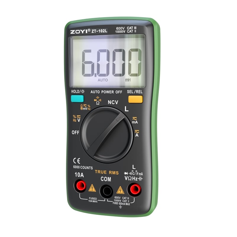 ZT-102L là đồng hồ vạn năng kỹ thuật số giá cả phải chăng với thiết kế màn hình rộng và cặp nhiệt điện, một công cụ cầm tay dành cho người dùng mới, sinh viên, giảng viên và nhân viên bảo trì. CAT Ⅲ 600V, đồng hồ vạn năng giá tốt bao gồm các chức năng hữu ích. Bạn có thể nhận được tất cả các phép đo cho: